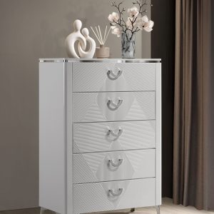 Cassia 5-drawer Bedroom Chest of Drawers White High Gloss