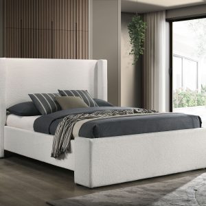 Alamosa Boucle Upholstered Queen Wingback Bed White