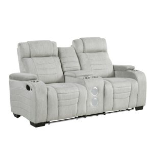 Ronan Double Reclining Love Seat with Center Console, Wireless Speakers, Storage Arms, Cup holders and LED