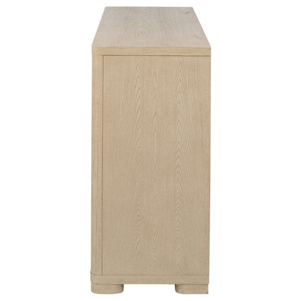 * Six-drawer dresser in a light elm finish for a refined, contemporary aesthetic