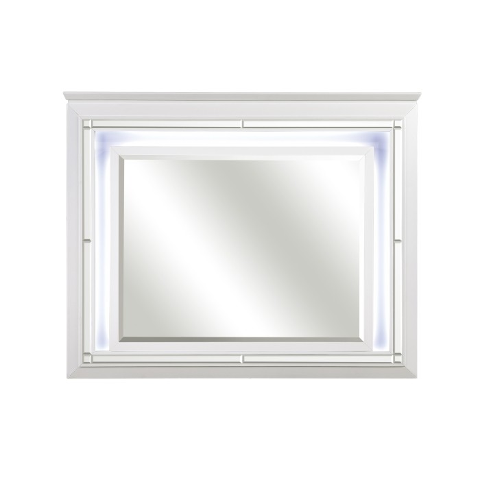 Glamour reigns in the design of the Allura Collection. The silver finish of the mirror frame is enhanced with decorative beveled mirror accents that reflect the illumination of the touch-engaged LED back-light.