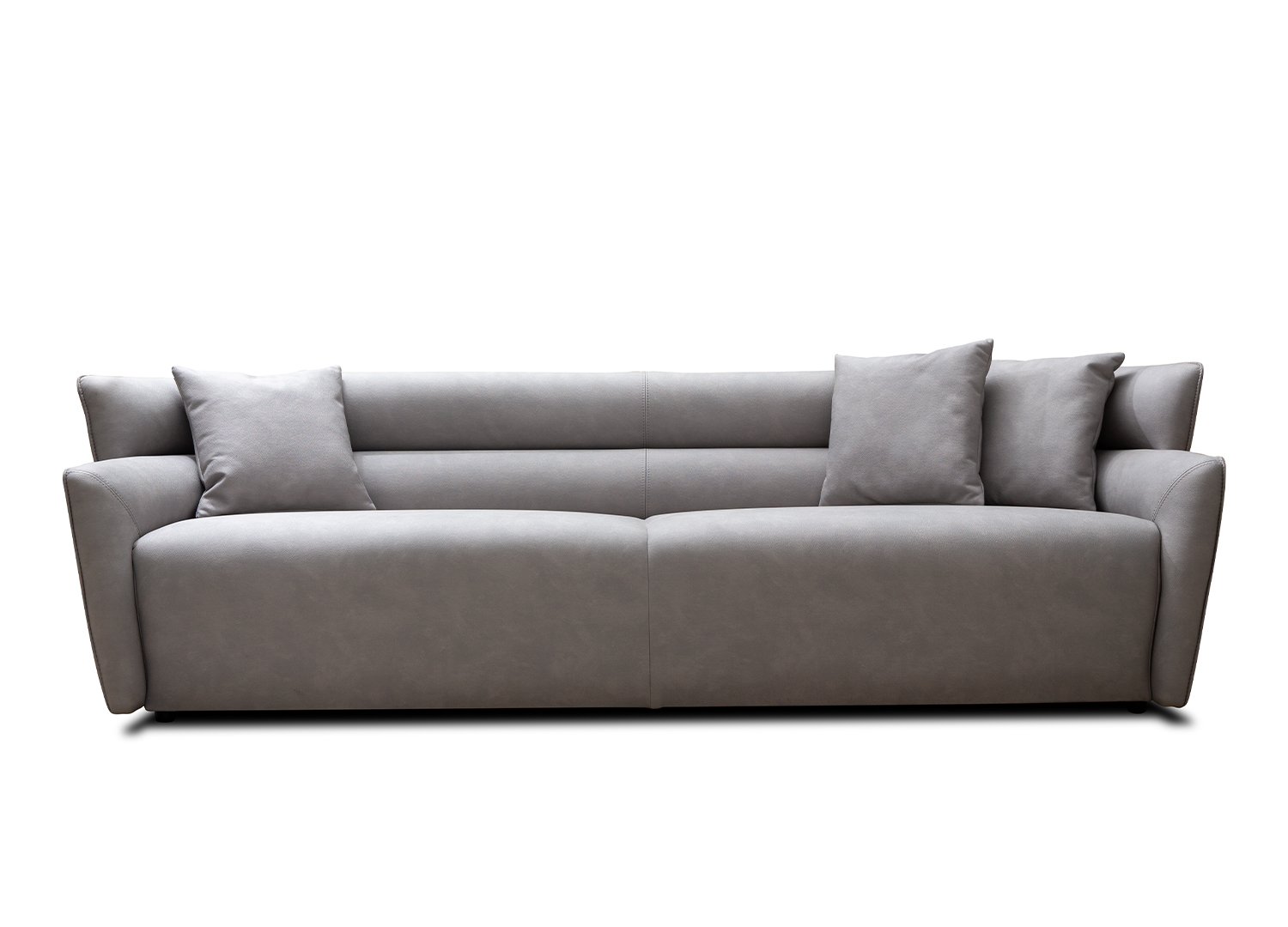 Boss Sofa, in Grey Nubuck, with Horizontal Padded Design Back, Black Legs.