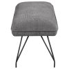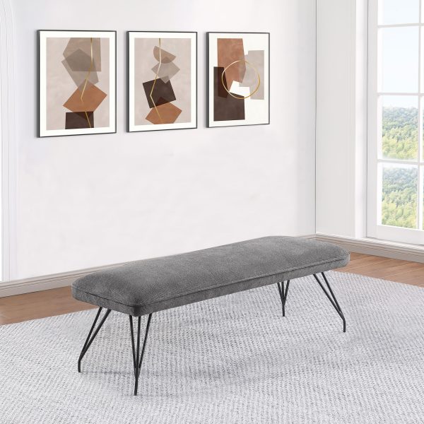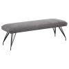 Put the finishing touches on your kitchen or dining room table with this mid-century inspired modern dining bench. Offering vintage appeal, it features splayed, hairpin style legs that bring both lightness and familiarity. The long, backless bench seat is constructed with metal, fabric (100% polyester), rubberwood, foam, plywood, and webbing, providing additional dining seating. The seat features pocket coil sinuous springs and webbing for cushion support, ensuring excellent comfort. The neutral upholstery is complemented by piped trim, adding a fresh, tailored touch to the overall look, while a black finish graces the legs of the bench for a smooth, seamless look at your dining table.