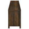 Rustic design meets modern warmth in this fireplace TV stand, featuring a realistic ember display and a convenient wireless remote. The dark pine finish and black metal accents frame a charming barn door aesthetic, with sliding doors that conceal adjustable shelving on each side. Thoughtfully designed for both function and style, this entertainment console includes cord management cutouts and supports TVs up to 80 inches with ease. Please note that there is no heat function included.