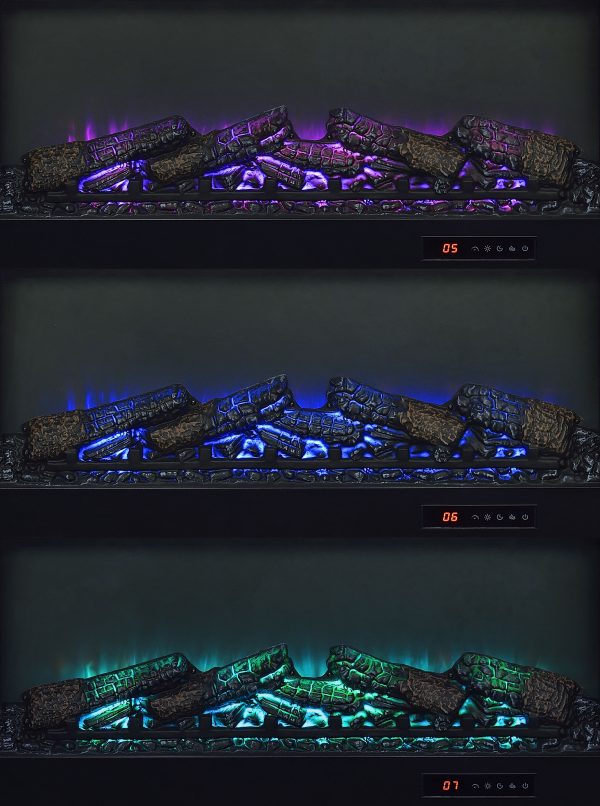* Center fireplace insert without heat function and glowing ember display for cozy ambiance