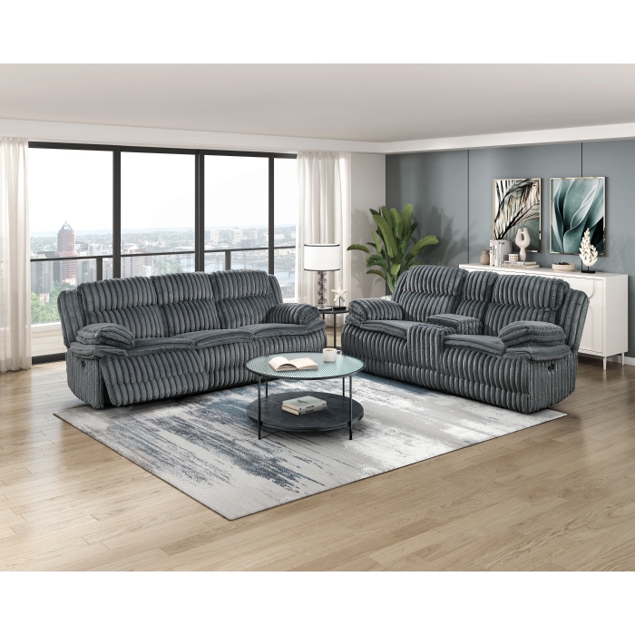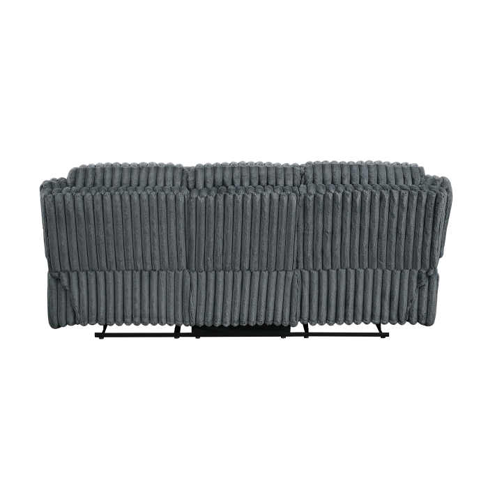 Experience ultimate relaxation and modern style with this dual manual reclining sofa, designed to provide luxurious comfort and full-body support. Featuring smooth pull-tab reclining seats, deeply padded cushions, and pillow-top armrests, this reclining sofa offers exceptional lumbar and overall body support for a cozy lounging experience. Upholstered in ultra-soft ribbed corduroy fabric, it adds a trendy yet inviting touch to any space while ensuring maximum comfort and warmth. The sturdy metal seat frame and reinforced reclining system provide long-lasting durability and smooth reclining operation, making it the perfect addition to your living room, home theater, or entertainment area for movie nights, relaxation, or casual gatherings.