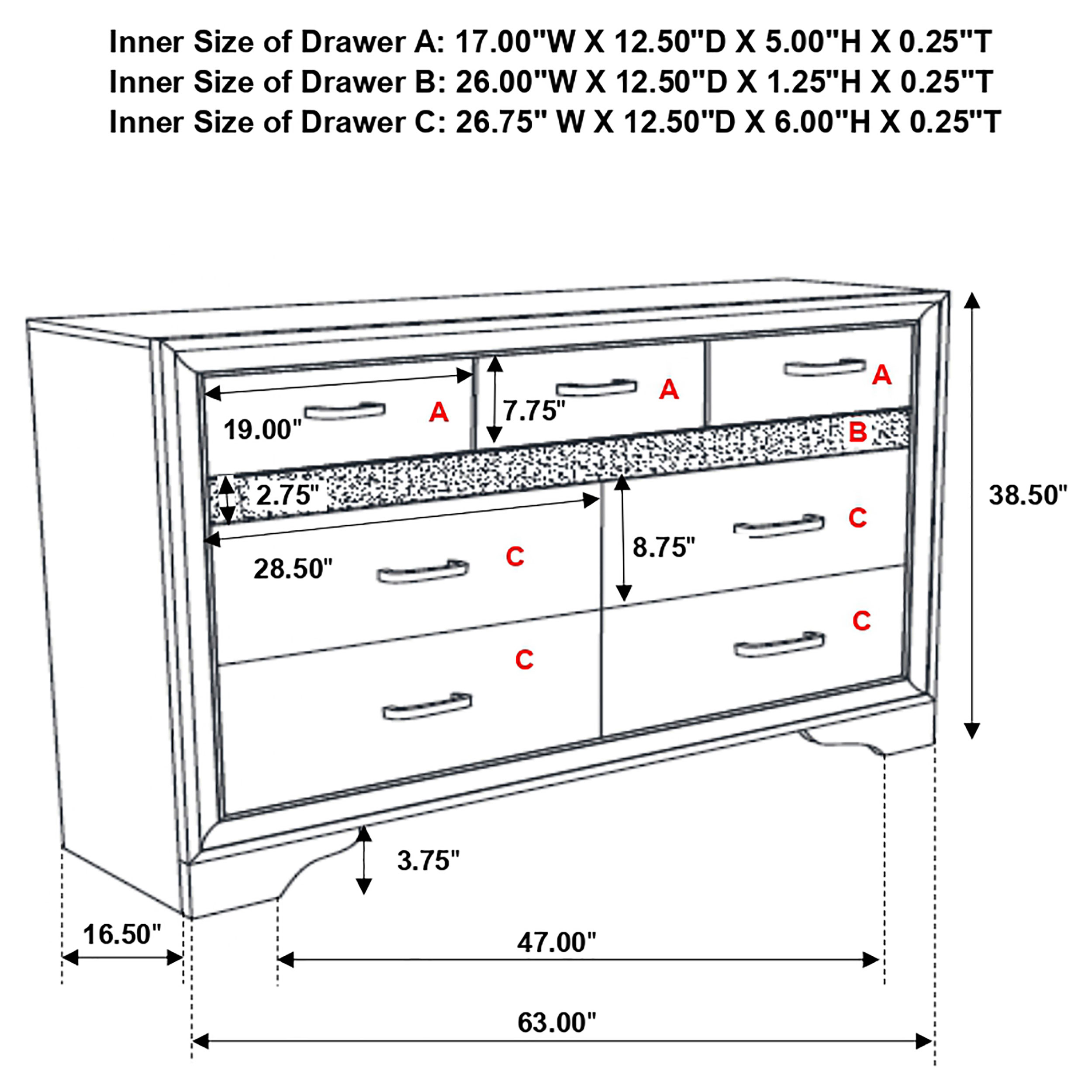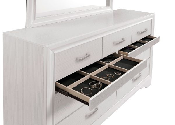 * Dresser includes seven drawers with framed mirror to match