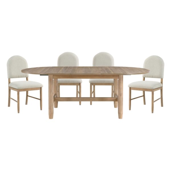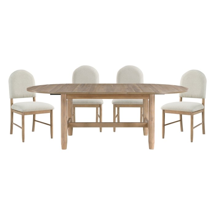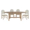 The Myrna Collection brings a touch of rustic elegance to your dining space with its warm wood tones, natural textures, and versatile designs. This collection features an extendable oval dining table crafted from acacia wood, perfect for both intimate family meals and larger gatherings. Complementing the table are comfortable upholstered dining chairs with a wire-brushed natural finish, offering both style and support. The collection also includes a spacious acacia wood server, providing ample storage for your dining essentials.