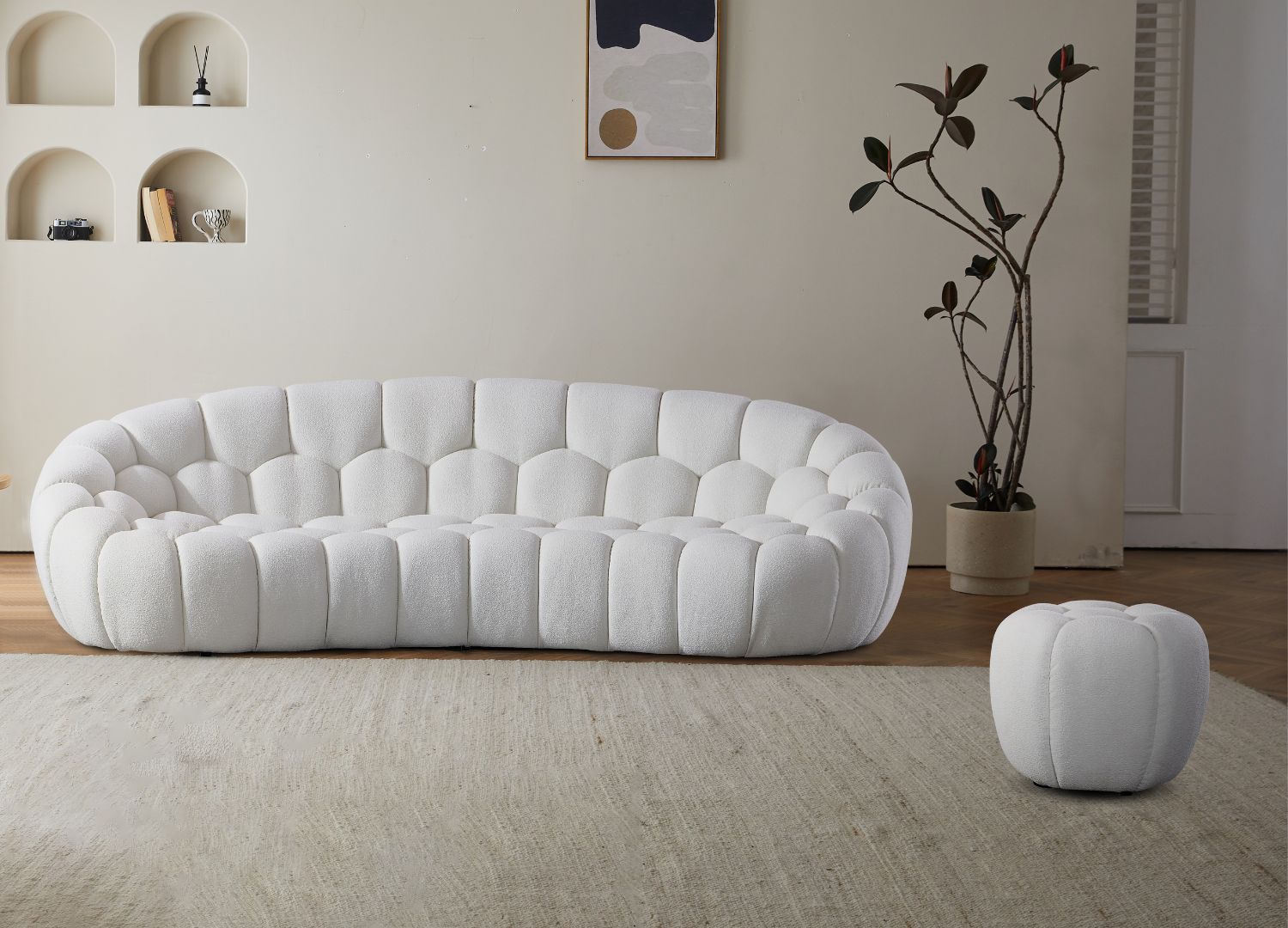 The Nest Ottoman Upholstered in White Boucle Fabric, it defines the harmony of emotion, functionality, and innovation. Its distinctive design makes the Nest Sofa an iconic piece in our collection. You can combine it with the Nest.