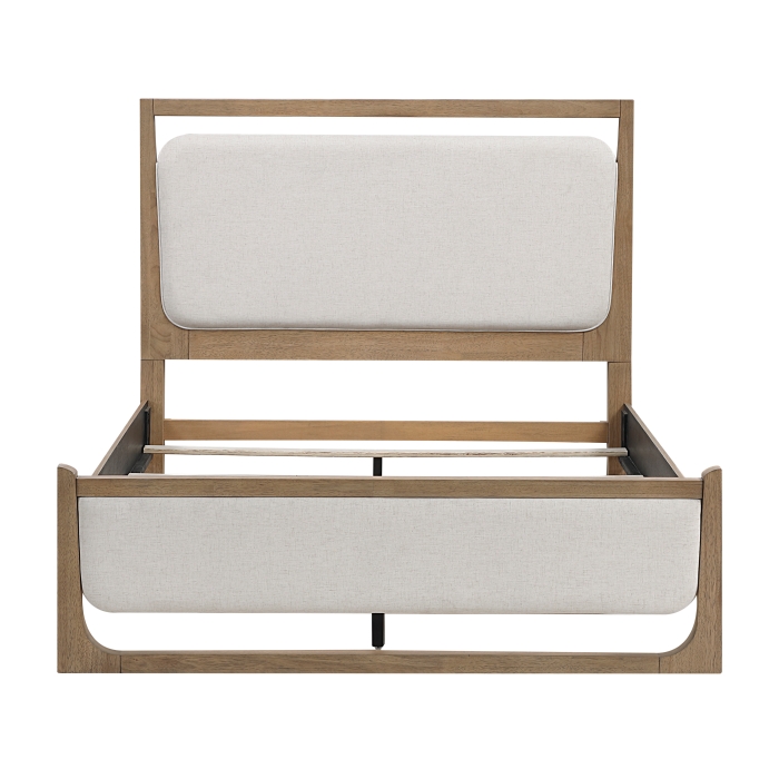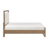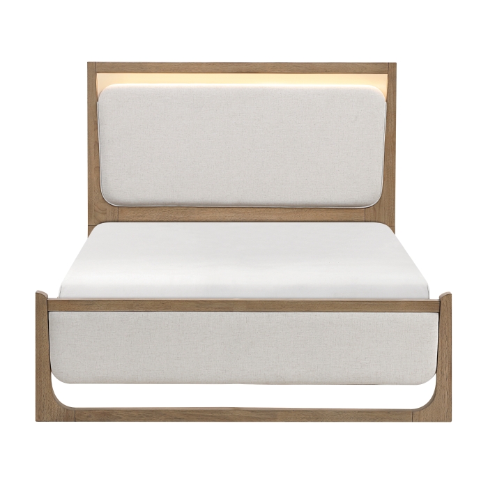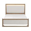 Elevate your bedroom’s ambiance and style with this modern bed frame, featuring a striking combination of light brown wood and textured upholstered accents. Crafted from durable hickory veneer, wood, and engineered wood, this bed boasts a sophisticated design with a plush headboard and footboard. The integrated LED lighting in the headboard, controlled by convenient touch sensors, adds a warm glow, perfect for reading or setting a mood. This complete bed set includes the headboard, footboard, and rails, providing a sturdy and stylish foundation for your mattress. While assembly is required, the effortless blend of contemporary design, smart features, and quality construction makes this bed an ideal centerpiece for any modern sleep sanctuary (foundation/box spring required).