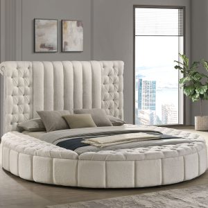 Designed to pair effortlessly with its matching dresser, this mirror introduces softness and symmetry to the bedroom. The rectangular shape is bordered in plush ivory boucle, echoing the textures and tones of the full collection. Subtle tufting along the frame adds just enough detail, while the smooth mirrored surface reflects light and elegance into the room. This piece is the perfect finishing touch to a space rooted in glamor and comfort.