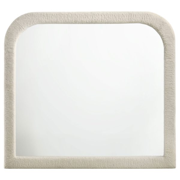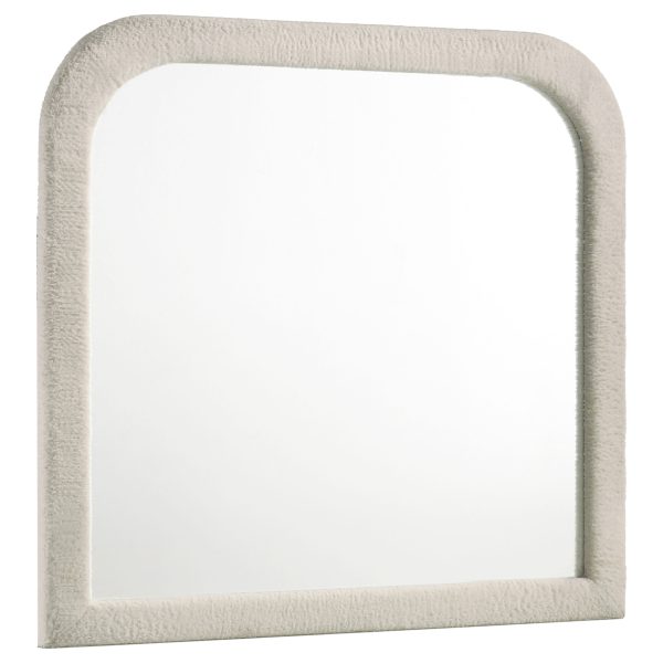 * Dresser mirror features a rectangular silhouette framed in soft ivory boucle upholstery