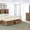 Enhance a handsome bedroom with the restrained sophistication of a modern bedroom set. The set delivers wooden construction and centers on a storage bed with a tall fluted headboard and low footboard with a pair of drawers for linens and accessories. Storage pieces add easy space for all your essentials and personal items. Each is adorned with vertical pulls that mimic the design of the bed’s headboard, adding detail and dimensionality. The set offers fresh, refined style and personality, perfect for a soothing, relaxed bedroom retreat.
